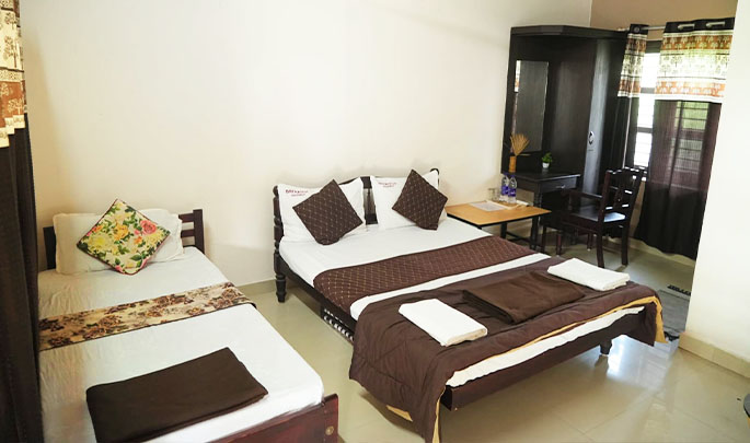 Rooms DELUXE DOUBLE BEDROOM A/C Deluxe Double Bedroom A/C Previous Next Enlarge Photos • Free Breakfast • Free Wi-Fi • Free Parking RESERVE NOW DELUXE TRIPLE BEDROOM A/C Deluxe Triple Bedroom A/C Previous Next Enlarge Photos • Free Breakfast • Free Wi-Fi • Free Parking RESERVE NOW BUDGET DOUBLE BEDROOM NON A/C Budget Non A/c Double Room PreviousNext Enlarge Photos • Free Breakfast • Free Wi-Fi • Free Parking RESERVE NOW